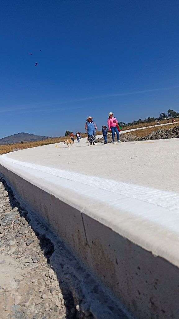 La obra, de 15 centímetros de espesor y malla electrosoldada, tiene una durabilidad superior a 20 años y sustituye el antiguo camino de terracería que en temporada de lluvias era prácticamente intransitable.