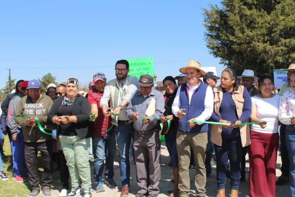 Durante su gira de trabajo, el alcalde también puso en marcha la pavimentación con concreto hidráulico de casi 300 metros de vialidad vecinal, con malla electrosoldada y 15 centímetros de espesor.