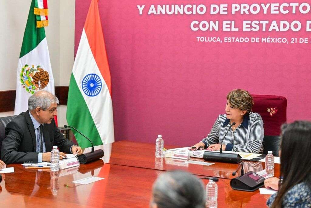 TOLUCA, Estado de México.- La Gobernadora del Estado de México, Delfina Gómez Álvarez recibió a una delegación de empresarios de la India, encabezados por el embajador de ese país en México, Pankaj Sharma, en la que se formalizaron proyectos de cooperación que fortalecerán la educación digital y capacitación agrícola en la entidad mexiquense.