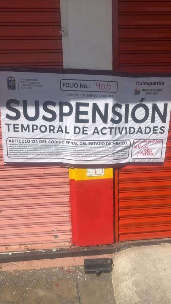 La titular de la Dirección Jurídica de Tlalnepantla, Miriam Martínez Barrios, informó que se colocaron sellos de suspensión provisional para que los propietarios puedan sacar alimentos perecederos y así evitar que se generen focos de insalubridad que pudieran afectar a las y los vecinos.
