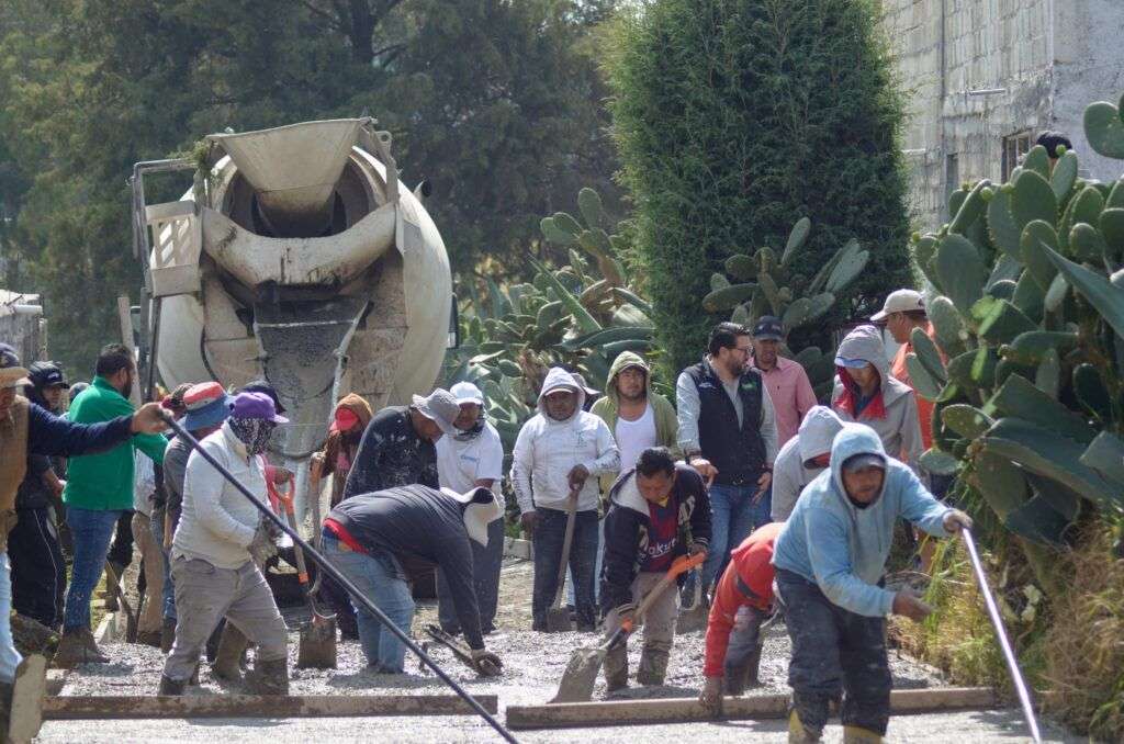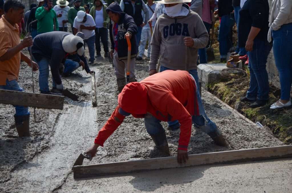 Durante la jornada, de la que formaron parte integrantes del Cabildo, se colocaron cerca de 85 metros lineales de concreto, en una intervención que permitirá a las familias contar con un camino más seguro y funcional para sus traslados diarios.