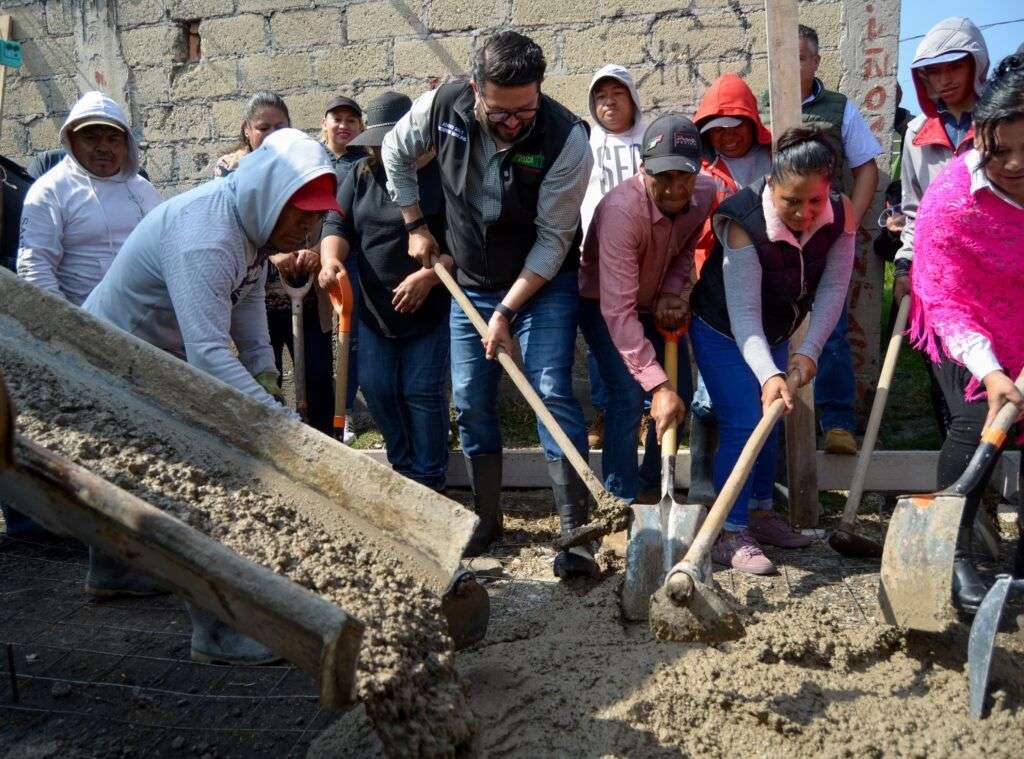 Con botas y oala en mano, Solis Gómez participó en el tendido del concreto, sumándose al esfuerzo de la ciudadanía y reafirmando que este programa tiene como esencia trabajar hombro con hombro para atender las necesidades de cada localidad.