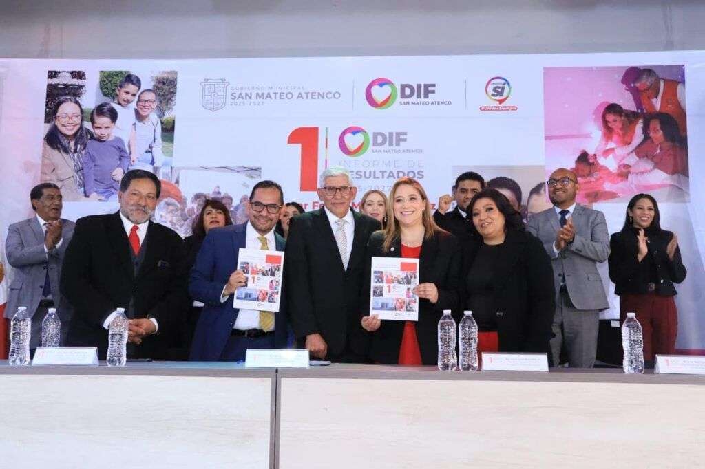Acompañado por las presidentas honorarias de los Sistemas Municipales DIF de Toluca, Zinacantepec y Lerma, por directores de los Sistemas Municipales DIF de Metepec, Almoloya de Juárez, Chapultepec, Muñiz Máynez reportó significativos avances en la prevención del embarazo adolescente, en el apoyo a quienes luchan contra el cáncer, en la atención jurídica para las familias, y el apoyo que la institución recibe mediante la construcción de alianzas con la sociedad.