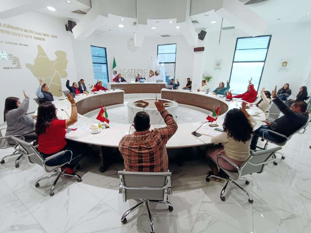 Por causas de utilidad pública, la presidenta municipal Azucena Cisneros Coss y las y los síndicos y regidores votaron a favor de la desincorporación del patrimonio inmobiliario municipal de una fracción identificada con la letra “D” del predio denominado “Los Muertos”, ubicado en calle Tikal sin número, manzana s/n, en Santa María Chiconautla, con superficie de 10,000.65 metros cuadrados.