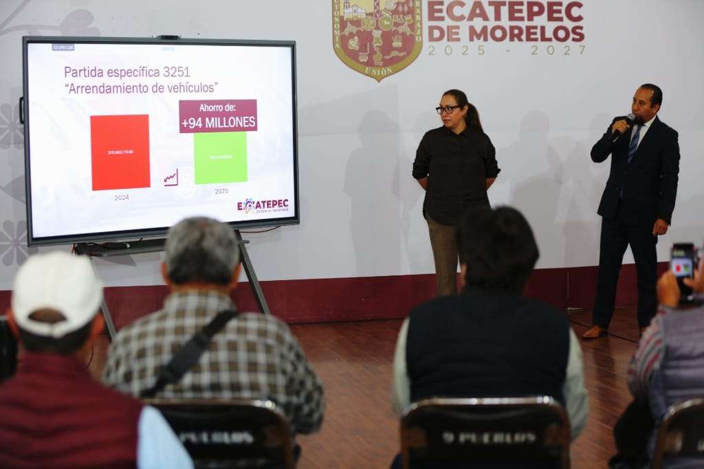 Mencionó que tan solo el Ayuntamiento recuperó 547 millones de pesos “que antes terminaban en fugas, en privilegios y en corrupción”, además de otros recursos recuperados en el DIF municipal, el organismo de agua Sapase y el Instituto Municipal de Cultura Física y Deporte de Ecatepec de Morelos (Imcufideem), para un total de casi mil millones de pesos de ahorros.