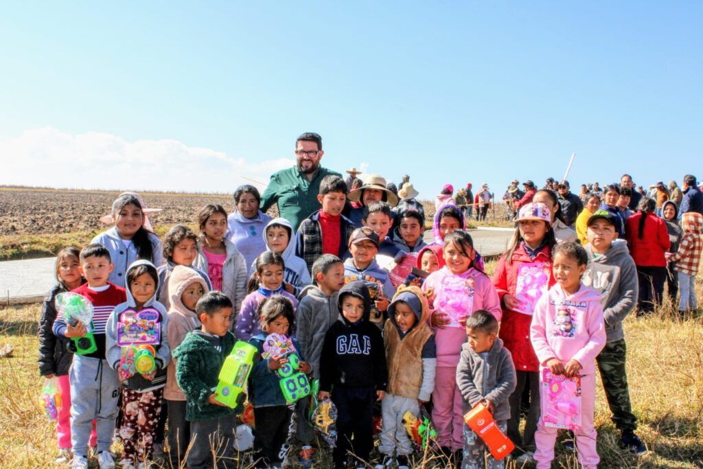 Durante su visita, el mandatario municipal convivió con las familias de la comunidad y, como parte de las actividades navideñas repartió juguetes a niñas y niños, así como canastas alimentarias a las y los vecinos.
