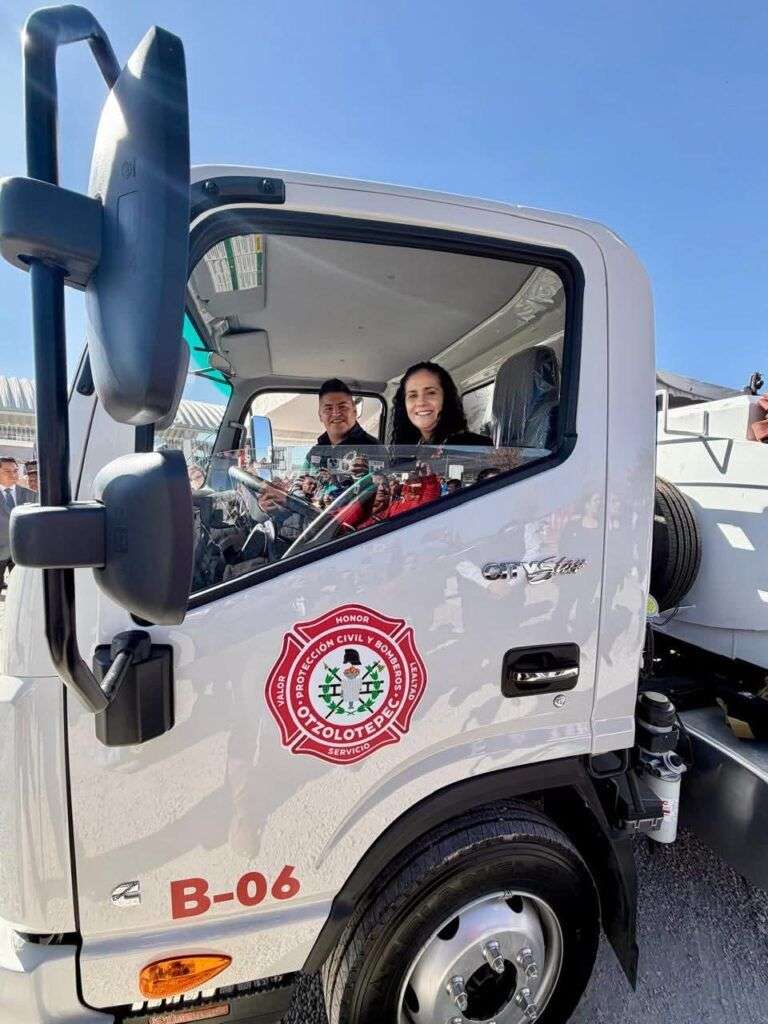 La alcaldesa entregó una patrullas, escudos antimotines y un camiónsisterna para protección civil.