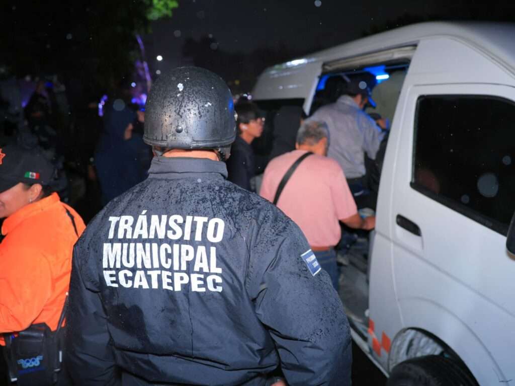 Ecatepec, Méx., a 24 de marzo de 2026. La alcaldesa Azucena Cisneros Coss supervisó el operativo “Transporte Seguro” realizado por la policía de Tránsito Municipal, cuyos elementos fueron equipados con body cam (dispositivo de audio y video sujetado al uniforme) para monitoreo en tiempo real de la intervención, además de vigilancia con drones, que dio como resultado la detención de dos personas por supuesta portación de sustancias tóxicas.