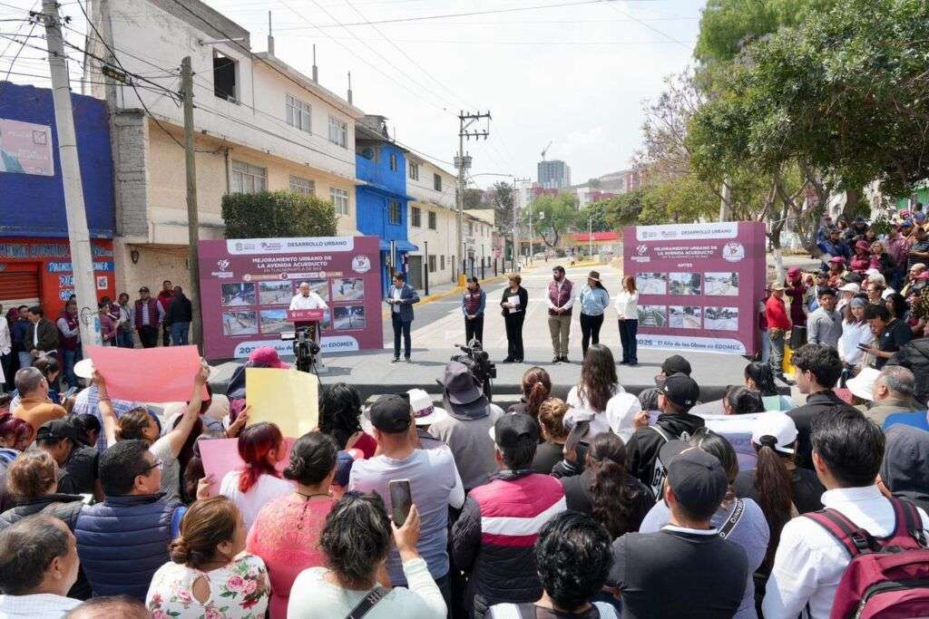 - Con una intervención de 14,022 metros cuadrados con iluminación, vigilancia y cruces seguros. Tlalnepantla de Baz, Estado de México, a 30 de marzo de 2026.- La Gobernadora del Estado de México, Delfina Gómez Álvarez, encabezó junto al Presidente Municipal de Tlalnepantla, Raciel Pérez Cruz, la entrega de las obras de mejoramiento urbano en la Avenida Acueducto, en la Col. Jorge Jiménez Cantú, bajo la estrategia “Senderos Mexiquenses, Caminemos Seguras”, con una inversión neta de 10.8 millones de pesos.