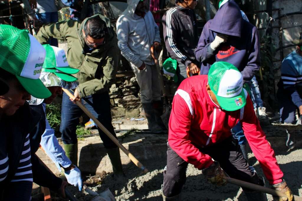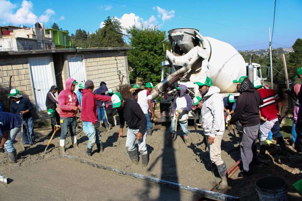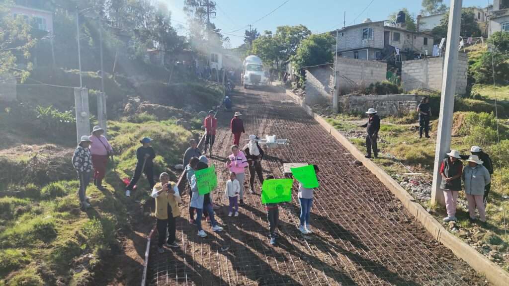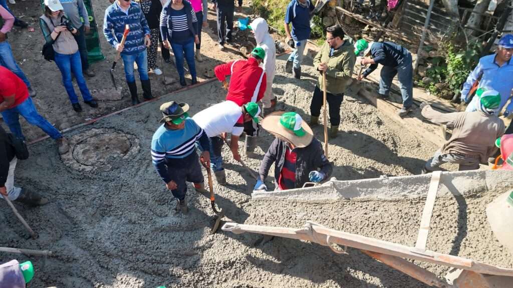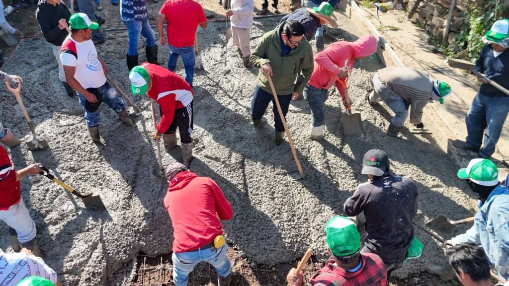 El esquema contempla que la población aporte la mano de obra, mientras que el gobierno suministra los materiales y en esta ocasión, decenas de vecinas y vecinos se sumaron a las labores junto al Presidente municipal para encementar un tramo vial que presentaba muy malas condiciones.